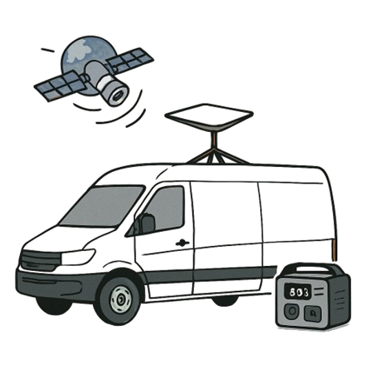 A solução implementada combina conectividade via satélite de baixa órbita (LEO), infraestrutura móvel embarcada em veículos e fontes de energia portátil autossuficiente, permitindo rápida implantação, mobilidade total e operação independente da rede elétrica convencional.